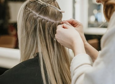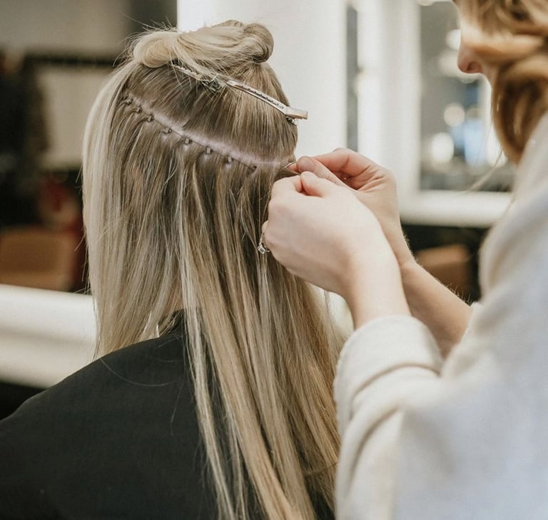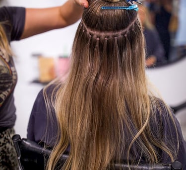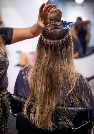 Hair extension services offer various methods to enhance your natural hair, including: Clip-in extensions/Tape-in extensions/Sew-in extensions/Bonded extensions
